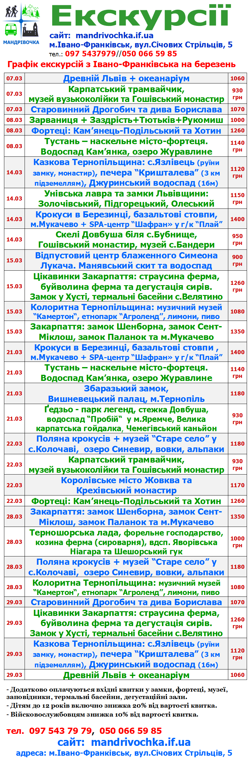 Графік екскурсій: на березень 2026 р