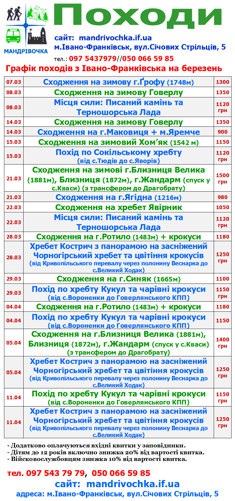 Графік походів: на березень 2026 р